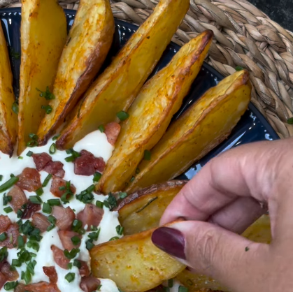 Batata rústica com piscina de queijo