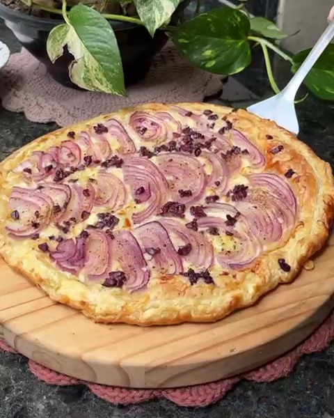 Folhado de Natal com queijo e cebola roxa
